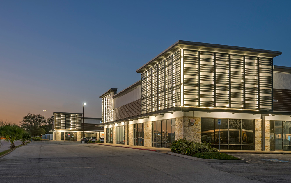 The latest iteration includes a sleek wrap around canopy, a contemporary raised wooden façade, new and enhanced common area lighting, and a new modern color pallet for the property as a whole.